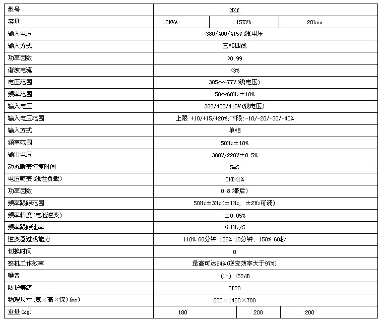Paradigm NXf系列高性能UPS(10~20KVA)是艾默生网络能源最新推出的新一代三进单出型全数字在线式智能交流不间断电源系统,适用于各种单相负载及其它应用环境。包含10kVA、15kVA、20kVA三个型号。可6台机器直接并联运行。主要适用于小型数据中心、通信机房、计费中心、精密控制室、过程控制中心。